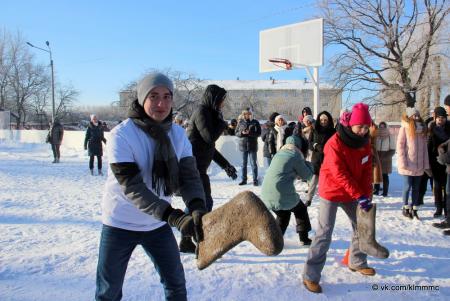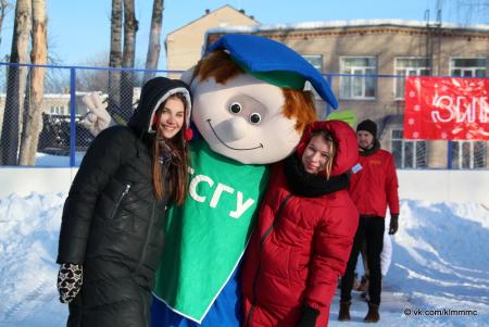 Далее, настроившись на дружеский и спортивный лад, студенты отправились на спортплощадку за университетом, где их ждало участие в досуговой программе «Спортивное ядро». Испытать себя и сравнить свои силы в конкурсных испытаниях вызвались шесть студенческих команд. Ребята с азартом участвовали в комических эстафетах: бегали на одной лыже, забивали хоккейными клюшками мячи, кидали на дальность валенки, а болельщики не забывали активно поддерживать свои учебные заведения шумными кричалками. За каждую маленькую победу команды получали бонусные фишки «Татьянин день».