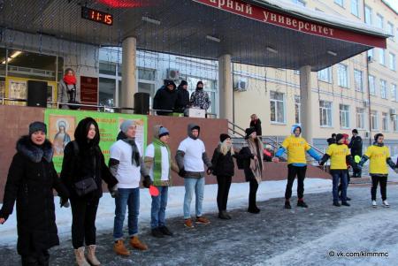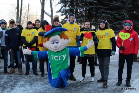 Праздник студенчества открыла массовая спортивная зарядка, которую провели преподаватели факультета физической культуры и спорта ГСГУ. В этот морозный солнечный день подвигаться под зажигательную музыку всем было в удовольствие! «Мы все такие разные, но всех нас объединяет единство доверия, доброты и студенчества», – призвали ведущие мероприятия, после чего студенты, взявшись за руки, образовали «круг единения», а затем выстроились в форме сердца, символизирующего любовь к своим alma mater.