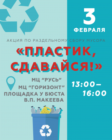 В предстоящее воскресенье, 3 февраля, в Коломенском городском округе пройдёт акция по раздельному сбору мусора «Пластик, сдавайся!».