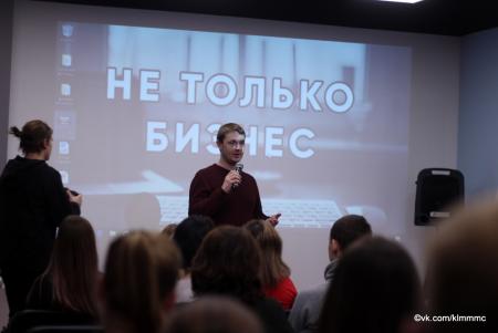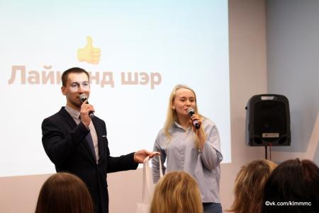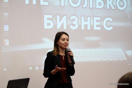 Активные и заинтересованные юноши и девушки встретились с менеджером по развитию компании АО «Озеры» (чипсы «Барин») Анастасией Прямовой и с владелицей сети магазинов меховых изделий «TOSAMOE55» Валентиной Шаминой.