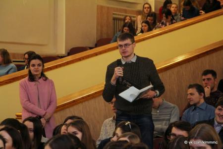 С первых минут общения в зале установилась очень теплая, дружеская атмосфера. Денис Юрьевич откровенно отвечал на вопросы студентов, которые касались не только развития города, но и его личной жизни. Молодые люди интересовались, в каком детском лагере глава проходил свою студенческую педагогическую практику, какой предмет в вузе для него был самым сложным, что самое трудное в работе главы, почему сокращаются рабочие места на Коломзаводе, зачем нужно местное самоуправление, как найти свое призвание в жизни, будут ли вакантные места в школах для учителей иностранного языка, строительство каких новых спортивных объектов планируется в округе, какую последнюю книгу прочитал, а также, что делается в округе для улучшения экологической обстановки.
