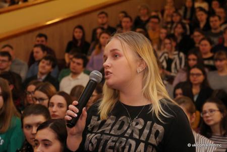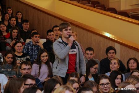 Во время встречи спикер не только делился со студентами историями и рецептами своего успеха, но также старался мотивировать ребят на поиск собственного жизненного пути и саморазвитие. Так, на вопрос одного из студентов «В чем секрет успеха любого дела?» глава ответил: «Главное – желание делать то, чем ты занимаешься. Вы должны получать удовольствие от того, что делаете. И это касается любой работы. Неважно, преподаете ли вы, руководите или занимаетесь юриспруденцией, если вы себя заставляете сделать шаг, то вы не даете полностью раскрыться тому потенциалу, который есть у вас. А в каждом из вас лежит достаточно серьезный, большой потенциал. Поэтому секрет любого успеха – желание работать, любовь к тому, чем вы занимаетесь, и ваша самоотдача».