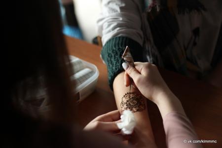 Так, от мастера по нанесению мехенди Кристины Кинчиной участники не только узнали о культуре и истории восточного искусства росписи по телу, но и стали его частью. Всем желающим Кристина сделала рисунки хной.
