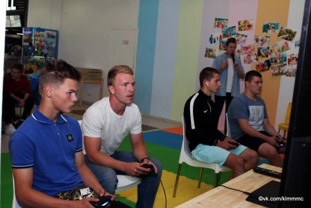 За игровой приставкой встретились 16 геймеров. Выбрав самые популярные футбольные сборные со всего мира, участники сражались в умении быстро нажимать на кнопки и выстраивать тактику игры.