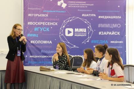 Темой семинара стала тележурналистика. Ведущая вечернего прайма телеканала «360 Подмосковье» Гузель Камаева пообщалась с юными медийщиками о современных масс-медиа и интеграции журналистики в интернет.