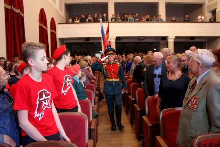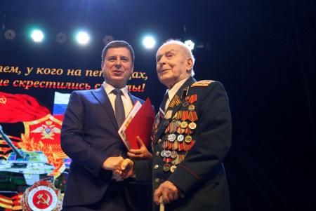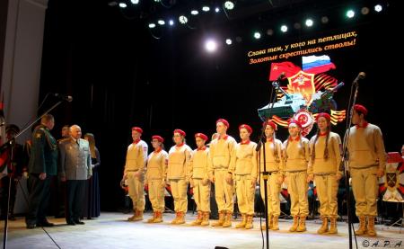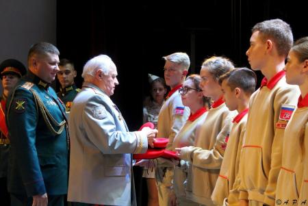 Со словами поздравлений к защитникам Отечества обратился начальник Коломенского высшего артиллерийского командного училища с 1992 по 2005 год генерал-майор Виктор Иванович Шумеев. За годы работы это военное учебное заведение подготовило более 14 тысяч офицерских кадров командного профиля для артиллерийских подразделений Вооруженных Сил РФ. В рамках торжественного собрания десяти юнармейцам Коломны были вручены новые комплекты формы от Национальной Ассоциации объединений офицеров запаса Вооруженных Сил («Мегапир»).