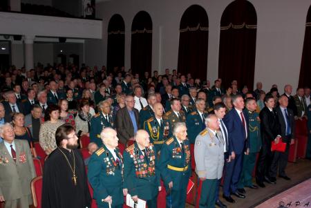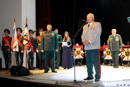 Под звуки «Встречного марша» в исполнении духового оркестра Коломенской филармонии знаменная группа торжественно внесла на сцену Государственный Флаг России и Флаг ракетных войск и артиллерии России. Прозвучал гимн Российской Федерации, и на сцену поднялся заместитель главы Коломенского городского округа Павел Николаевич Родин. От имени главы муниципалитета Дениса Юрьевича Лебедева он поблагодарил всех военнослужащих и ветеранов ракетных войск и артиллерии за добросовестную службу, патриотизм и весомый вклад в укрепление обороноспособности нашей страны.