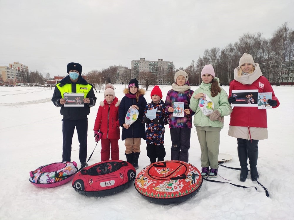 Автоинспекторы напомнили детям о правилах безопасного поведения на дороге и вблизи нее. Они акцентировали внимание на том, что кататься на санках и ватрушках можно только в безопасных местах. Родителям объяснили, как безопасно перевозить детей на тюбингах и санках, напомнили о необходимости обязательно держать ребенка за руку при переходе дороги.