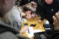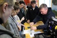 Далее студенты встретились с сотрудниками экспертно-криминалистического центра, которые продемонстрировали способы выявления следов рук и их фиксации, унифицированный криминалистический чемодан.