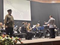Литературно-музыкальная программа состояла из музыкальных произведений военных лет, прозвучавших в исполнении солистов коллектива Юрия Демкина и Веры Смирновой, и сопровождалась отрывками из военной кинохроники.