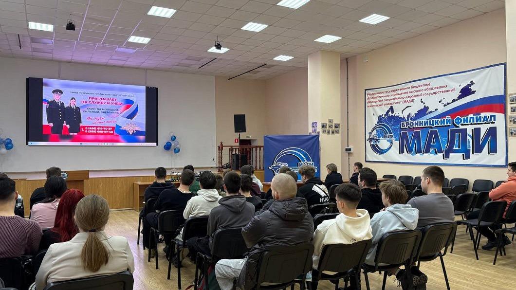 Сотрудники УМВД России по Г.о. Коломна провели акцию «Профессия – полицейский» в одном из колледжей соседнего муниципалитета. Мероприятие направлено на профориентацию молодежи и популяризацию службы в органах внутренних дел.