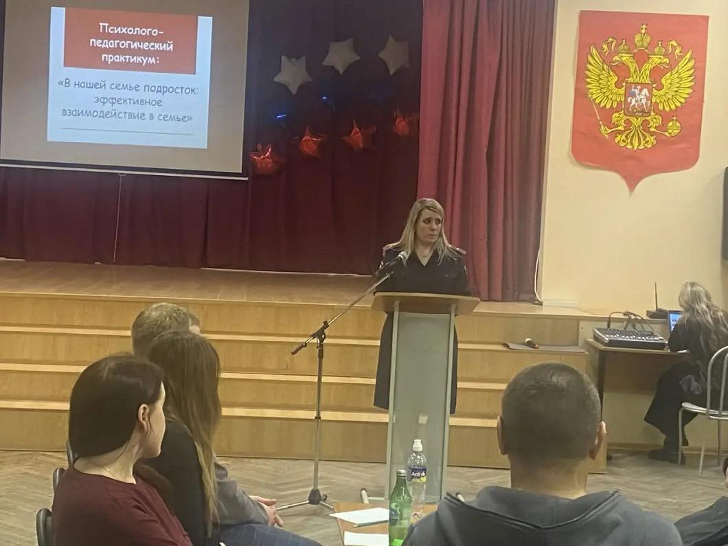 Начальник отделения по делам несовершеннолетних майор полиции Екатерина Широкова рассказала родителям о схемах вовлечения подростков в деструктивные сообщества и террористические организации, используемых злоумышленниками.