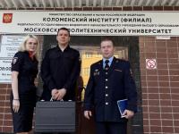 Сотрудники отдела по работе с личным составом УМВД России по Г.о. Коломна провели информационную акцию для студентов Коломенского филиала Московского политехнического университета. Мероприятие направлено на привлечение молодёжи на службу в органы внутренних дел.