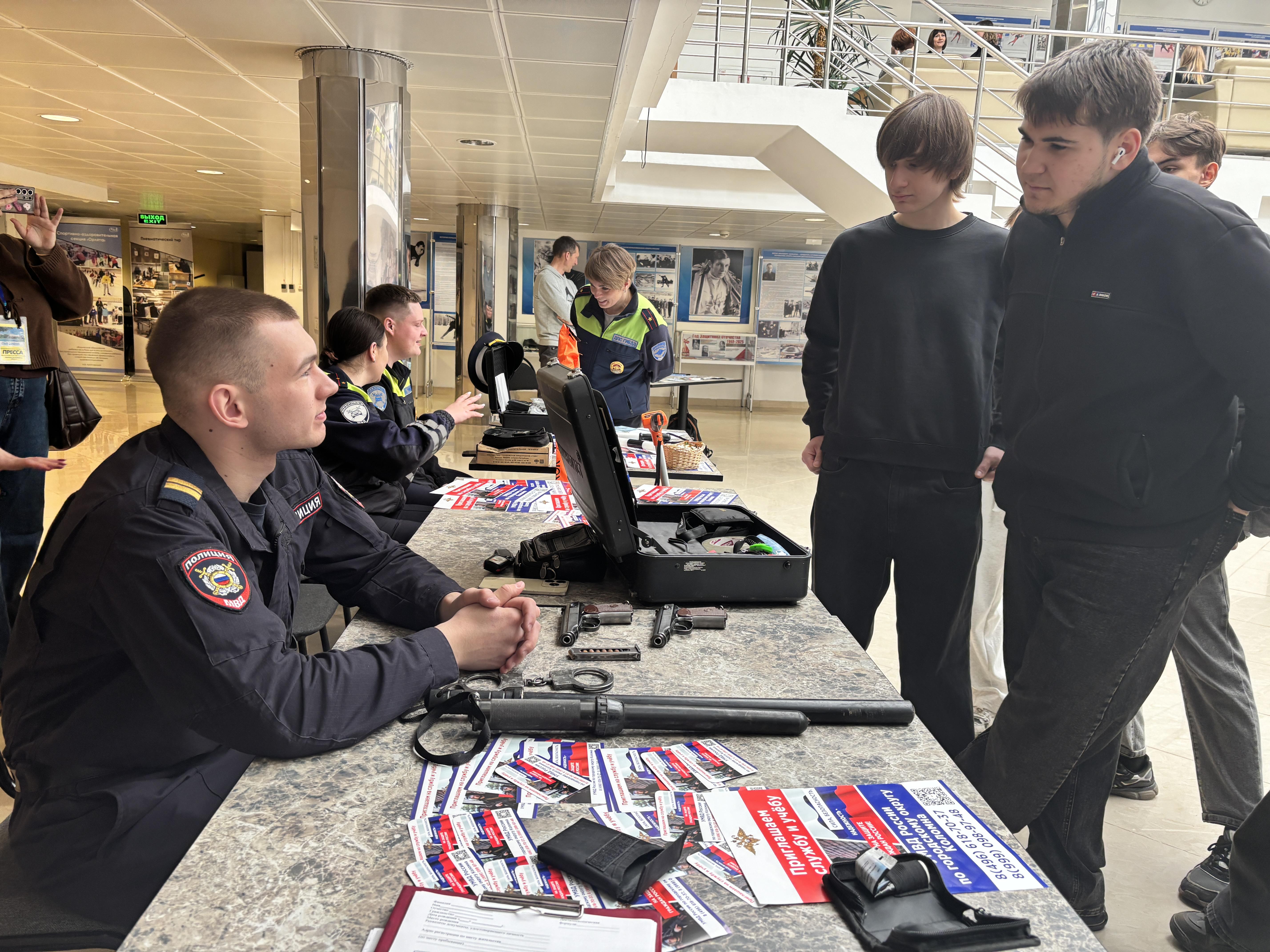 Представители кадрового подразделения полиции проинформировали студентов местных вузов и колледжей о требованиях к кандидатам на службу в органы внутренних дел. Особое внимание было уделено льготам и социальным гарантиям сотрудников: стабильному денежному довольствию, возможности получения служебного жилья, бесплатному медицинскому обслуживанию и выходу на пенсию после 20 лет выслуги.