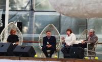 С главной сцены фестиваля на площадке «Открытая ЛитСтудия» доктор филологических наук ГСГУ, профессор Владимир Александрович Викторович; доктор исторических наук ГСГУ, профессор Алексей Борисович Мазуров и доцент кафедры русского языка и литературы ГСГУ Анна Юрьевна Козлова провели презентацию новой книги «Коломенский Декамерон» и рассказали о серии «Коломенский текст».