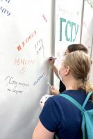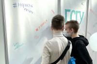 Тема стенда ГСГУ в этом году – «#НарисуйМечту». Старшеклассникам предлагали выразить свои желания и фантазии о будущем: о поступлении, выборе факультета и профессии. «Поступить бы в ГСГУ», «#ЯCмогу», «Хочу поступить на бюджет» – делились ребята.