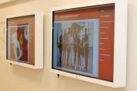 Новые интерактивные панели установили в коридоре здания ГСГУ. Пока их две, но в будущем эти устройства все чаще будут появляться в общественных и учебных зонах университета.