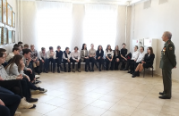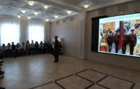 В преддверии Дня защитника Отечества, во Дворце культуры «Тепловозостроитель» для обучающихся 8 класса Гимназии № 2 «Квантор» прошёл «Урок мужества». Его провёл представитель Коломенского отделения Всероссийской творческой общественной организации «Союз художников России», подполковник в отставке Александр Викторович Меркулов.