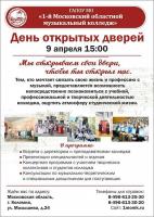 9 апреля в 1-ом Московском музыкальном колледже пройдёт День открытых дверей. Это встреча для тех, кто мечтает связать свою жизнь и профессию с музыкой, и тех, кто хочет ознакомиться с профессиональной и творческой деятельностью учреждения.