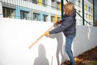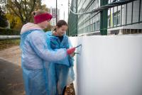 «Учителя были заняты здесь с 9 часов утра и до 5 часов вечера, – поясняет Елена Новикова. – Детей мы не можем надолго задействовать, поэтому они приходили группами и работали по два часа. Максимальная высота стен – 4,2 метра. На такую высоту ребят мы, конечно, не пускали. Там раскрашивали педагоги».