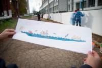«В этом учебном году у нас стартовал городской проект «Раскрась свой город яркими красками», – говорит преподаватель художественной школы Елена Новикова. – Первым нашим испытанием в этом проекте был бетонный забор в микрорайоне Колычёво. Ребята с этим заданием успешно справились. Теперь к нам обратились из администрации муниципалитета и попросили украсить подпорные стены учебного заведения».