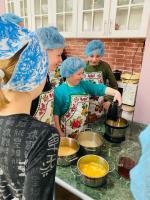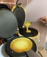 Замешивать тесто, используя необходимые ингредиенты, пользоваться блендером и вафельницами, сворачивать горячие вафли, добавляя варёную сгущёнку - всё это проделывали ребята дружной и сплочённой командой.