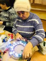 В Полурядинском сельском доме культуры прошел мастер-класс «Новогодний венок». Началось мероприятие со знакомства с историей возникновения рождественского венка. Женщины – домохозяйки в предвкушении праздничных дней решили изготовить своими руками уникальное украшение для дома. Веночки можно делать из чего угодно, любого цвета, качества, вкуса структуры. Участницы взяли за основу обычный картон и украсили его декоративными элементами: сосновыми шишками, бусинами, еловыми веточками и даже скорлупками грецких орехов.