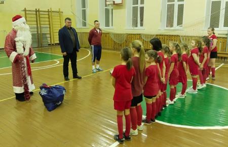 Тренировка у игроков началась с поздравления от Деда Мороза и вручения сладких подарков.