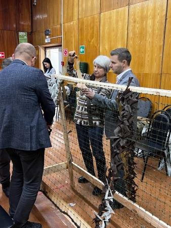 Депутаты Совета депутатов Городского округа Коломна посетили мастерскую по плетению маскировочных сетей для СВО.