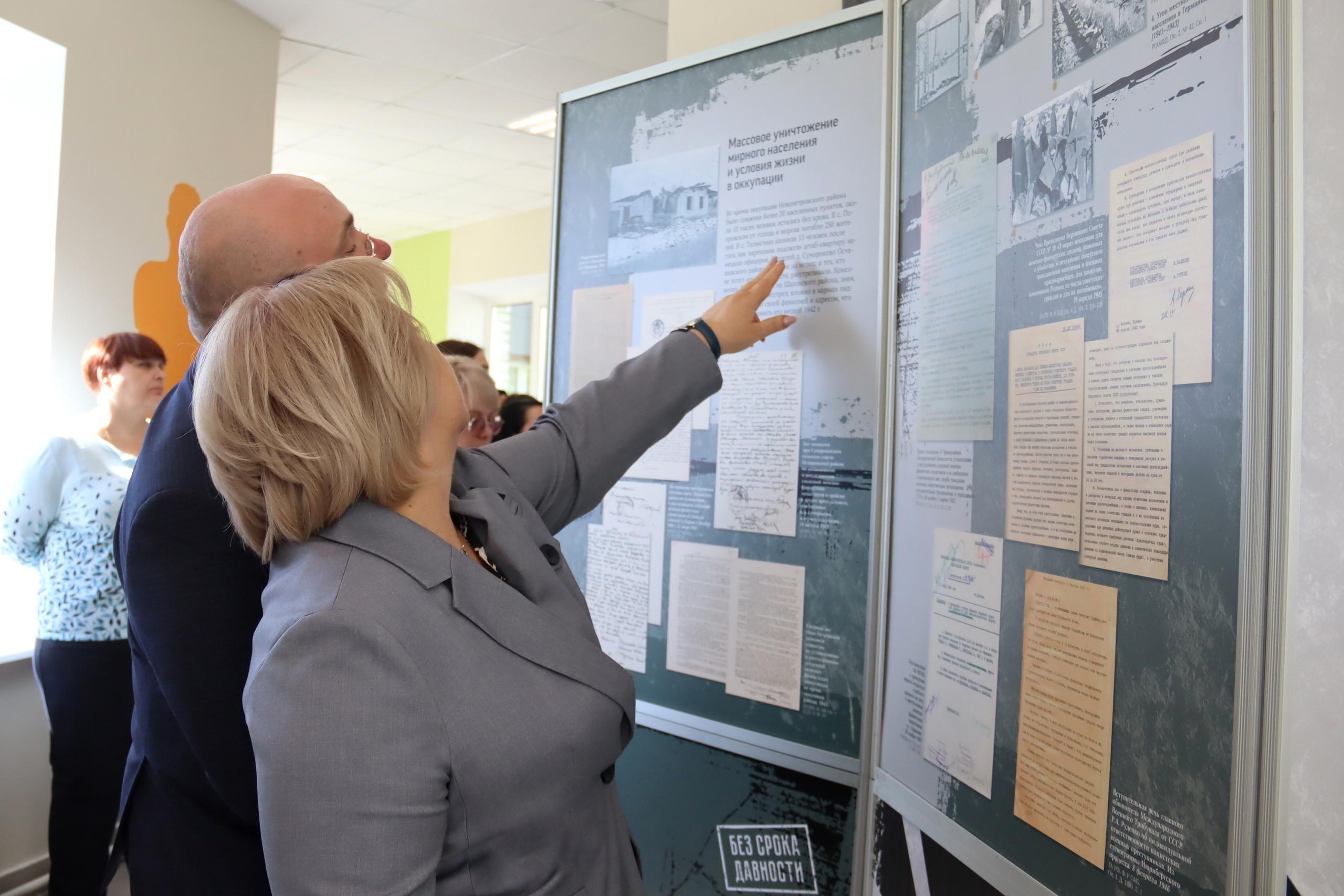 Депутат Совета депутатов Городского округа Коломна, ректор ГОУ ВО МО "ГСГУ" Жанна Леонова открыла в ГСГУ передвижную выставку «Без срока давности».