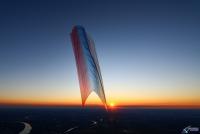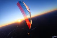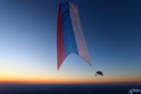 Для непростого прыжка использовали новую парашютную систему типа «крыло», её разработали в НИИ парашютостроения. Специально для пошива стяга создали сверхтонкую ткань, вес которой не превышает 18 грамм на метр.