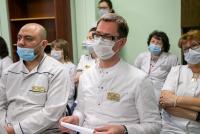 Кроме того, Никита Чаплин вручил детским врачам награды от Московской областной Думы. За многолетний добросовестный труд, преданность своему делу и за заслуги в охране здоровья населения Московской области благодарностью Московской областной Думы награждены врач ультразвуковой диагностики детской поликлиники № 1 Игорь Бабкин и врач-пульмонолог консультативно-диагностического центра детской поликлиники № 1 Денис Антропов.