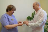 Процедурная медицинская сестра Коломенской больницы Ольга Андрюшина удостоена звания «Почетный донор России» – на ее счету более 40 кроводач! Удостоверение и почетный знак сегодня Ольге Викторовне вручил заведующий отделением переливания крови Коломенской больницы Сергей Понятов.