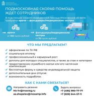 В подстанции скорой медицинской помощи Московской области требуются врачи и средний медицинский персонал (фельдшеры, медицинские сестры).