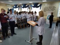 Одним из ключевых моментов мероприятия было посвящение учеников медицинского 10 «В» класса в ряды волонтерского отряда «Алые паруса». Активисты рассказали о целях и задачах волонтерской деятельности и вручили новым участникам эмблемы отряда волонтеров-медиков.