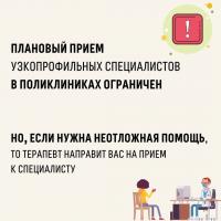 ⛔️ Плановый прием узкопрофильных специалистов в поликлиниках ограничен. Но если пациент нуждается в неотложной помощи, терапевт направит его на прием к профильному специалисту.
