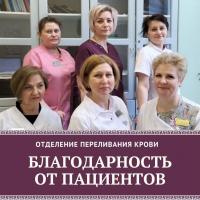 «Хочется выразить огромную благодарность медперсоналу отделения переливания крови, который каждый квартал встречает нас с улыбками. Всегда спросят, как дела, поинтересуются нашей жизнью. Девчонки очень жизнерадостные, позитивные, в эту теплую обстановку хочется просто бежать, зная, что тебя там ждут. К каждому донору относятся с большим уважением, приглашают вернуться еще раз! Сдавая кровь, мы спасаем чью-то жизнь... Спасибо городу, что у нас такая замечательная станция переливания крови!»