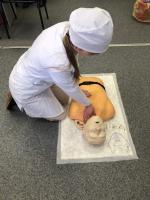 На втором студенты продемонстрировали практику. Вот медицинские сестры показали, что могут поставить пациенту капельницу. Фельдшеры провели ЭКГ, аускультацию легких и базовую сердечно-легочную реанимацию. Акушерки выполнили пальпацию плода, аускультацию его сердцебиения и базовую сердечно-легочную реанимацию. А фармацевты изготовили раствор для внутреннего применения и подыскали для покупателя аналог рецептурного препарата.