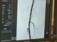 В Региональный сосудистый центр Коломенской больницы с сильными болями в ноге поступил 71-летний житель Зарайска. Врачи диагностировали критическую ишемию, состояние начинающейся гангрены, угрожающее ампутацией единственной ноги – ранее пациент потерял другую конечность из-за атеросклероза. В экстренном порядке через прокол в запястье пациенту выполнили ангиографию, которая подтвердила тяжелое поражение сосудов атеросклерозом, сужения артерий вплоть до их полной закупорки на всем протяжении – от тазобедренного до коленного сустава.