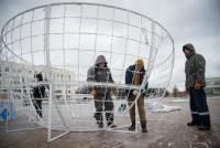 - Шар состоит из 35 отдельных элементов, - поясняет один из мастеров. - Все их надо соединить между собой. Количество болтов, которые нам пришлось закрутить мы, конечно, не считали, но их очень много. Ещё предстоит соединить две полусферы вместе. Для этого потребуется кран-манипулятор.