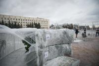 Кстати, на площадь уже завезли элементы будущей новогодней арки с цифрами «2022». Эта конструкция заменит прошлогоднюю арку с часами. Сборкой рабочие займутся сразу после монтажа шара.