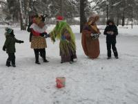 В гости к ребятам пришли герои из разных сказок: Чебурашка, Кикимора и Баба Бабариха. А также символ уходящего года Бычок. Весело и задорно сказочные герои вместе с ребятами принимали участие в различных конкурсах, музыкальных играх, танцах и забавах: «Бег в обручах», «На ледянках», «Игра в зимний футбол», «Перетягивание каната», «Попади в цель» и пр.