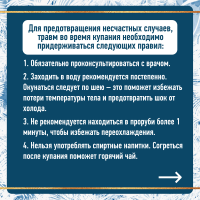 2. Окунаться в прорубь следует в специально подготовленных местах под присмотром спасателей.