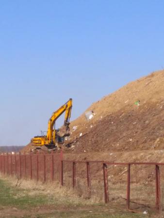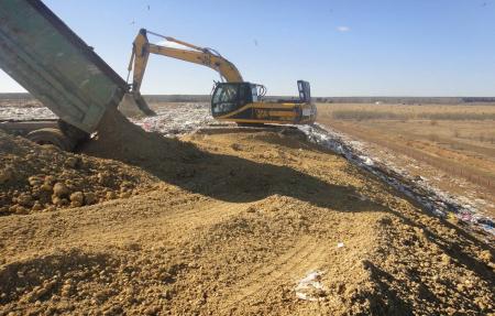 Пересыпка грунтом проводится семь дней в неделю. Отсыпаны откосы, снизу работает бульдозер, чтобы не было открытых участков с мусором».