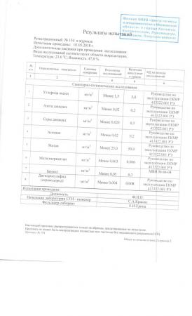 Протокол лабораторных исследований атмосферного воздуха от 03.05.2018 г.