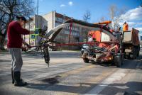 Зимой используется литой асфальтобетон, а с наступлением весны, когда температура воздуха становится положительной, ремонт выполняется с применением горячей асфальтобетонной смеси, а также струйно-инъекционным методом.