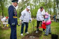 80 кустов сортовой сирени и 18 саженцев деревьев – липы, декоративные яблони, рябины и красные дубы – высадили этим утром участники акции. Сорта сирени подбирали символически: теперь в парке Мира будет расти и радовать жителей своим цветением сирень «Маршал Жуков», «Маршал Василевский», «Василий Теркин», «Огни Донбасса» и «Красная Москва».