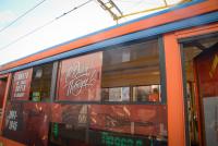 В преддверии 9 мая в Коломне глава округа Александр Гречищев поздравляет пассажиров трамвая с наступающим праздником. В вагонах, оборудованных электронной системой информирования, звучат слова благодарности ветеранам Великой Отечественной войны и пожелания мирного неба всем жителям округа.