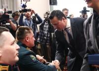 Ключи от автомобиля с ручным управлением вручили военнослужащему из Коломны губернатор Московской области Андрей Юрьевич Воробьев и статс-секретарь - заместитель министра обороны РФ Анна Евгеньевна Цивилева.