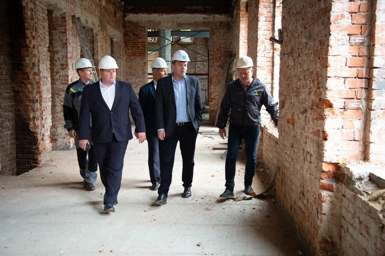 Продолжается капитальный ремонт поликлиники №1 в Коломне. Глава округа Александр Гречищев посетил стройплощадку вместе с главным врачом Коломенской больницы Николаем Макаровым и председателем Совета депутатов Николаем Братушковым.